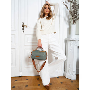 Sieviešu plecu soma, zaļi brūna, neilons un mākslīgā āda