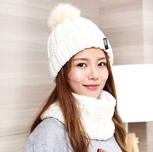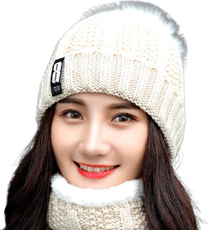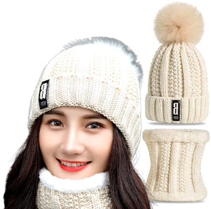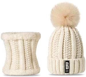 Sieviešu cepures un šalles komplekts SD68 krēmkrāsā