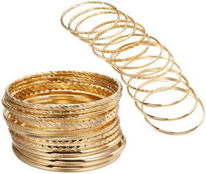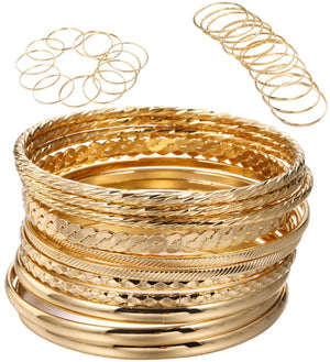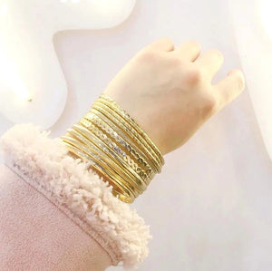 Šis elegantais zelta rokassprādzes komplekts būs lielisks papildinājums jūsu aksesuāru kolekcijai. Komplektā ietilpst 12 gredzeni, kas paredzēti nēsāšanai uz plaukstas locītavas.