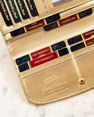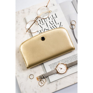 Šis maks ne tikai var saturēt vairāk nekā 10 kartes, bet arī nodrošina jūsu datu drošību, pateicoties iebūvētajai RFID aizsardzībai. Tā zelta krāsa piešķir tam izsmalcinātību un eleganci, un lielais izmērs ļauj ērti uzglabāt visas nepieciešamās lietas.