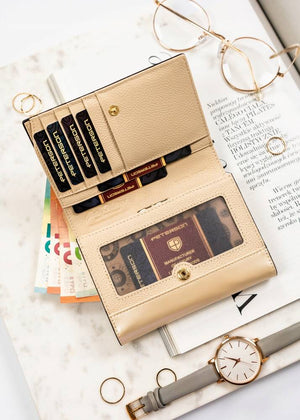 Šis maks ir lieliska izvēle sievietēm, kuras novērtē kvalitāti un funkcionalitāti. Tā kompaktais izmērs ļauj to ērti nēsāt rokassomiņā, un RFID aizsardzība nodrošina jūsu datu drošību.