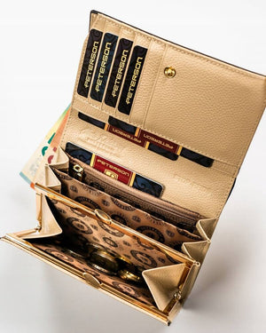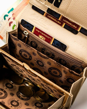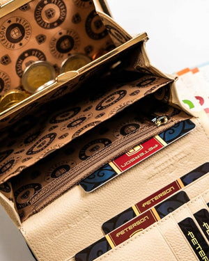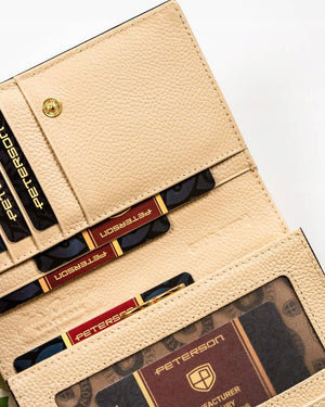 Šis elegantais sieviešu maks no Peterson kolekcijas ir izgatavots no augstas kvalitātes īstas lakotas ādas. Tā smalkā bēšā krāsa piešķir tam izsmalcinātību un stilu.