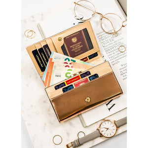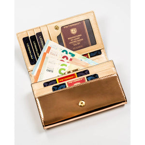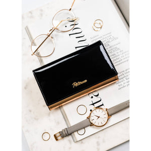 Šis elegantais sieviešu maks no Peterson kolekcijas ir izgatavots no augstas kvalitātes īstas un lakotas ādas. Melnā krāsa nodrošina klasisku un daudzpusīgu stilu, kas piemērots dažādiem gadījumiem. Lielais izmērs nodrošina, ka jums ir pietiekami daudz vietas visām jūsu nepieciešamajām lietām. Turklāt maks ir aprīkots ar RFID aizsardzību, kas palīdz aizsargāt jūsu kartes no nevēlamas skenēšanas. Ar 1-5 karšu nodalījumiem šis maks ir praktiska un stilīga izvēle ikvienai sievietei.