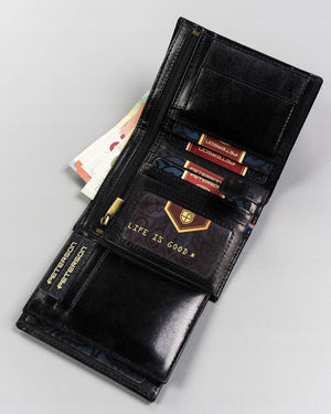 Šis elegantais un funkcionālais maks ir lieliska izvēle vīriešiem, kuri novērtē kvalitāti un drošību. Izgatavots no īstas ādas, tas nodrošina izturību un stilīgu izskatu. Melnā krāsa nodrošina daudzpusību, tāpēc maks lieliski iederēsies jebkurā stilā. Pateicoties lielajam izmēram un vairāk nekā 10 karšu nodalījumiem, tajā ērti var ievietot visas jūsu nepieciešamās lietas. Turklāt integrētā RFID aizsardzība palīdz aizsargāt jūsu kartes no nevēlamas skenēšanas.