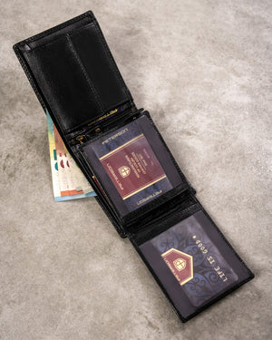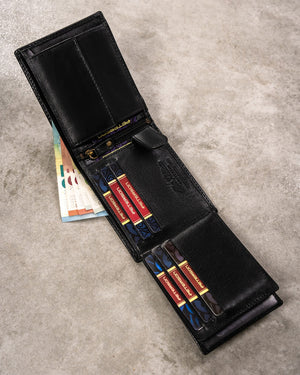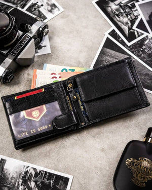 Šis elegantais un funkcionālais maks ir lieliska izvēle vīriešiem, kuri novērtē kvalitāti un drošību. Izgatavots no īstas ādas, tas ne tikai izskatās stilīgi, bet arī nodrošina izturību. Melnā krāsa piešķir klasisku un daudzpusīgu izskatu, kas piemērots jebkuram gadījumam.
