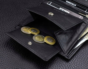 Šis elegantais maks ir izgatavots no augstas kvalitātes īstas ādas, lai nodrošinātu izturību un stilu. Tam ir pievienota oriģināla Stevens® kastīte, padarot to par lielisku dāvanu.