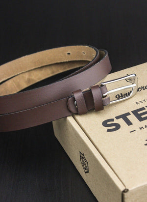 Šī elegantā ādas josta ir lieliska izvēle tiem, kas novērtē kvalitāti un stilu. Tā ir izgatavota no īstas ādas, tumši brūnā krāsā, kas labi piestāvēs dažādām apģērba kombinācijām.