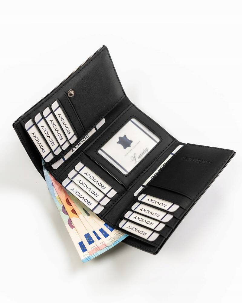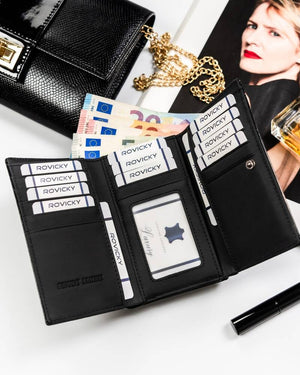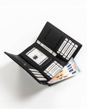 Šis maks ir praktisks un ietilpīgs, ar vairāk nekā 10 karšu nodalījumiem un atsevišķu nodalījumu monētām. Tā kompaktie izmēri ļauj to viegli ievietot rokassomiņā, un klasiskā melnā krāsa piestāv jebkuram stilam.