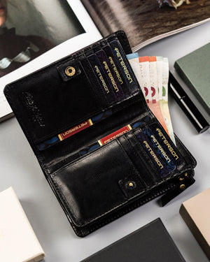 Šis elegantais un funkcionālais sieviešu maks, kas izgatavots no īstas ādas, ir lieliska izvēle ikdienas lietošanai. Melnā krāsa nodrošina klasisku un daudzpusīgu stilu, savukārt lielais izmērs nodrošina pietiekami daudz vietas visām nepieciešamajām lietām. Ar 6-10 karšu nodalījumiem un atsevišķu nodalījumu monētām šis maks palīdzēs jums uzturēt kārtību un komfortu.