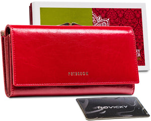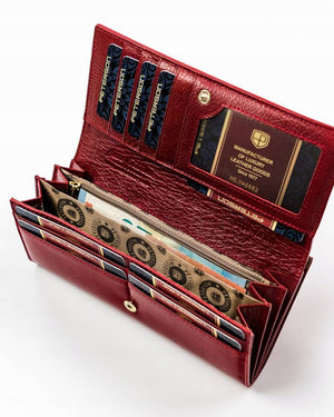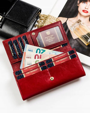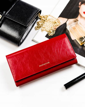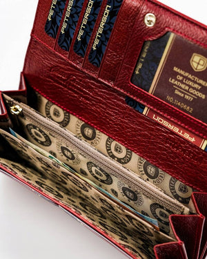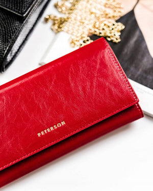 Šis elegantais sieviešu maks no Peterson kolekcijas ir izgatavots no augstas kvalitātes īstas ādas. Sarkanā krāsa piešķir ekskluzivitāti un stilu, un lielais izmērs nodrošina, ka jums būs pietiekami daudz vietas visām jūsu mantām. Makam ir 6-10 karšu nodalījumi un atsevišķs nodalījums monētām, padarot to ārkārtīgi praktisku ikdienas lietošanai.
