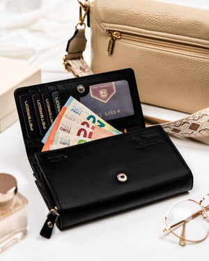 Šis elegantais sieviešu maks no Peterson kolekcijas ir izgatavots no augstas kvalitātes īstas ādas. Melnā krāsa nodrošina klasisku un daudzpusīgu stilu, kas piemērots dažādiem gadījumiem. Lielais izmērs nodrošina, ka jums būs pietiekami daudz vietas visām jūsu kartēm un monētām. Šī ir lieliska izvēle tiem, kas meklē praktiskuma un stila apvienojumu.