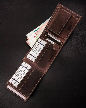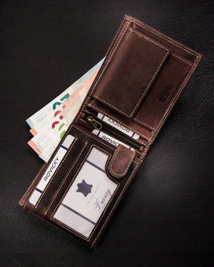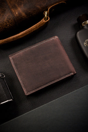 Šis maks ir lieliska izvēle tiem, kas novērtē kvalitāti un drošību. Izgatavots no dabīgas zamšādas un nubuka ādas, tas ne tikai izskatās eleganti, bet arī nodrošina izturību. Tumši brūnā krāsa nodrošina klasisku un daudzpusīgu stilu, savukārt RFID aizsardzība palīdz aizsargāt jūsu kartes no nevēlamas skenēšanas.