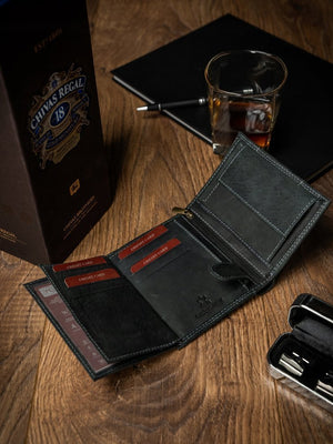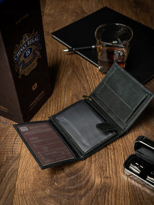 Šis elegantais un funkcionālais vīriešu maks ir izgatavots no augstas kvalitātes īstas ādas, nodrošinot izturību un stilu. Melnā krāsa piešķir klasisku un daudzpusīgu izskatu, kas piemērots jebkuram gadījumam. Lielais izmērs ļauj ērti uzglabāt visas nepieciešamās lietas, un RFID aizsardzība nodrošina jūsu karšu drošību. Makam ir 6-10 karšu nodalījumi, padarot to ideāli piemērotu gan ikdienas lietošanai, gan ceļojumiem.