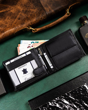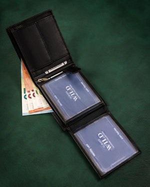 Šis elegantais un funkcionālais maks ir lieliska izvēle vīriešiem, kuri novērtē kvalitāti un drošību. Izgatavots no īstas ādas, tas nodrošina izturību un stilīgu izskatu. Melnā krāsa nodrošina daudzpusību, tāpēc maks lieliski iederēsies jebkurā stilā. Pateicoties integrētajai RFID aizsardzībai, jūsu kartes būs pasargātas no nevēlamas skenēšanas. Ar 6-10 karšu nodalījumiem šis maks ir praktisks un ērts ikdienas lietošanai.