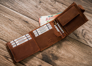 Šis elegantais un funkcionālais maks ir lieliska izvēle vīriešiem, kuri novērtē kvalitāti un stilu. Izgatavots no dabīgas zamšādas un nubuka ādas, tas nodrošina izturību un komfortu. Gaiši brūnā krāsa piešķir klasisku un daudzpusīgu izskatu, kas piemērots dažādiem gadījumiem. Makam ir RFID aizsardzība, kas palīdz aizsargāt jūsu kartes no nevēlamas skenēšanas. Ar 6-10 karšu nodalījumiem tas nodrošina pietiekami daudz vietas visiem jūsu svarīgajiem dokumentiem. Pateicoties lielajam izmēram un ērtiem izmēriem, šis maks ir praktiska un stilīga izvēle ikdienas lietošanai.