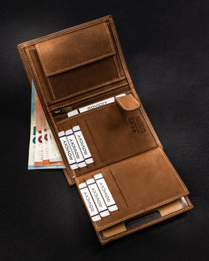 Šis vīriešu maks no Always Wild kolekcijas ir izgatavots no augstas kvalitātes dabīgas zamšādas un nubuka ādas, nodrošinot elegantu un izturīgu dizainu. Gaiši brūnā krāsa labi sader ar dažādiem stiliem, un lielais izmērs nodrošina, ka jums būs pietiekami daudz vietas visām jūsu mantām. Makam ir 6-10 karšu nodalījumi, tāpēc jūs varat ērti uzglabāt visas savas kartes. Turklāt integrētā RFID aizsardzība palīdzēs aizsargāt jūsu personas datus no neatļautas skenēšanas. Izmēri 13 cm x 9,5 cm x 2,5 cm nodrošina, ka maks būs ērts un praktisks ikdienas lietošanai.