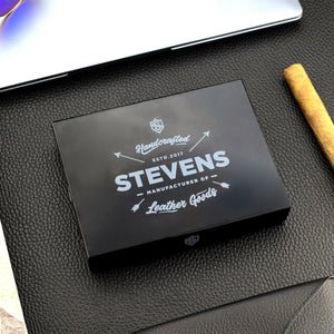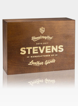 STEVENS® komplekts: vīriešu maks un josta koka kastītē