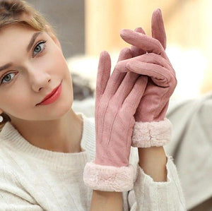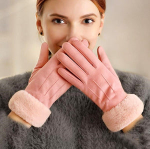 Šie sieviešu cimdi ir izgatavoti no silta un mīksta materiāla, nodrošinot komfortu un ērtības.