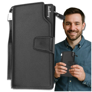 Šis melnais vīriešu maks ir funkcionalitātes, estētikas un uzticamības apvienojums. Lieliska izvēle vīrietim, kurš vēlas visu glabāt vienuviet un katru dienu izskatīties stilīgi.