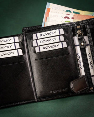 Šis elegantais vīriešu maks no Rovicky ir izgatavots no augstas kvalitātes īstas ādas, nodrošinot izturību un stilīgu izskatu.
