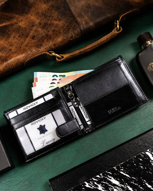 Vīriešu ādas maks Rovicky RV172 ir elegants un funkcionāls aksesuārs, kas izgatavots no augstas kvalitātes īstas ādas. Melnā krāsa nodrošina klasisku un daudzpusīgu stilu, kas piemērots dažādiem gadījumiem. Makam ir liels izmērs, tāpēc tajā ērti ietilps visas jūsu kartes un skaidra nauda. Ar 6-10 karšu nodalījumiem un RFID aizsardzību jūsu personas dati būs drošībā. Kompaktie izmēri (10 cm x 12 cm x 2 cm) ļauj ērti nēsāt maku kabatā vai somā.