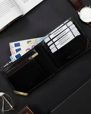 Šis vīriešu ādas maks Rovicky RV67 ir lieliska izvēle tiem, kas novērtē kvalitāti un funkcionalitāti. Izgatavots no īstas ādas, tas ne tikai izskatās eleganti, bet arī ir izturīgs. Melnā krāsa nodrošina klasisku un daudzpusīgu stilu, kas piemērots jebkuram gadījumam. Vidēja izmēra maku ir ērti pārnēsāt, un vairāk nekā 10 karšu nodalījumi nodrošina, ka visas jūsu kartes ir kārtīgi sakārtotas. Turklāt RFID aizsardzība palīdzēs aizsargāt jūsu personas datus no neatļautas skenēšanas. Izmēri 9,5 cm x 11,5 cm x 2 cm ļauj makam viegli ietilpt kabatā vai rokassomiņā.
