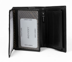 Šis vīriešu ādas maks Rovicky RV75 ir lieliska izvēle tiem, kas novērtē kvalitāti un stilu. Izgatavots no īstas ādas, tas ir eleganti melns un ar lielu izmēru, kas nodrošina pietiekami daudz vietas jūsu kartēm un skaidrai naudai. Makam ir 6-10 karšu nodalījumi, bet tam nav RFID aizsardzības. Tā izmēri ir 13 cm x 10 cm x 2,5 cm, tāpēc tas ērti iederas kabatā vai somā.