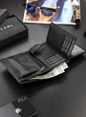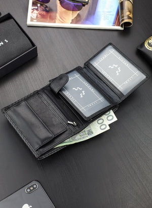 Vīriešu ādas maks Stevens 326 Carbon, melns S188