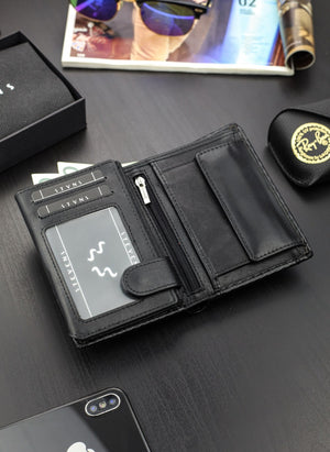 Šis vīriešu STEVENS® ādas maks ir ne tikai stilīgs, bet arī funkcionāls, ar iebūvētu RFID aizsardzību , kas pasargā jūsu kartes no neatļautas skenēšanas.