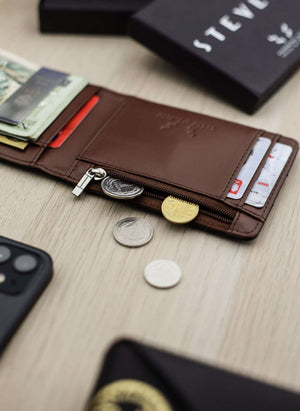 Vīriešu ādas maks Stevens Airtag BLK/BRN S186