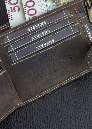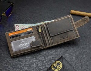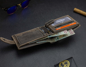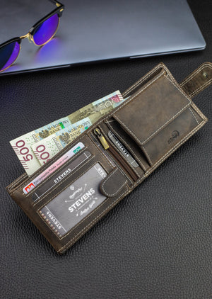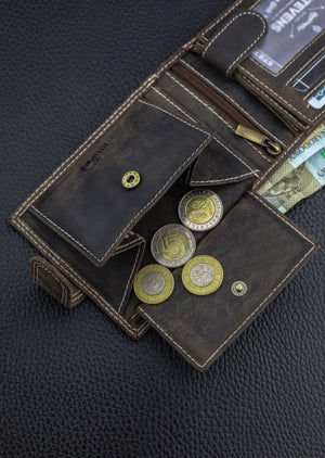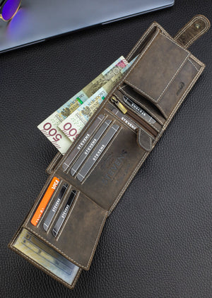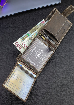 Šis elegantais vīriešu ādas maks ir radīts, lai apmierinātu visas jūsu vajadzības. Iekšpusē jūs atradīsiet:
