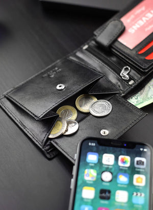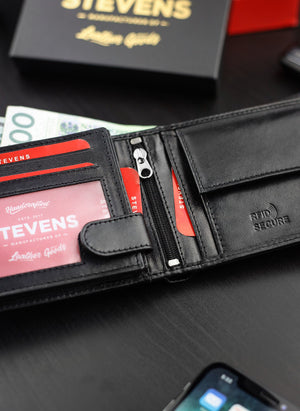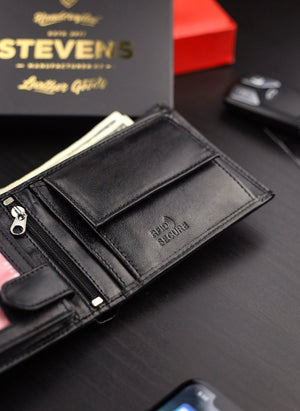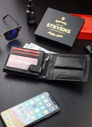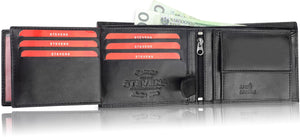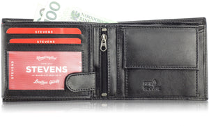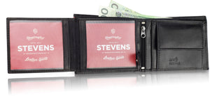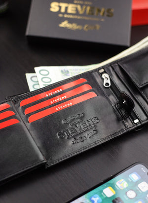 STEVENS® vīriešu ādas maks, melns, horizontāls, RFID Q2 - īsta āda