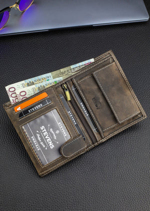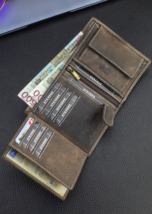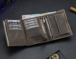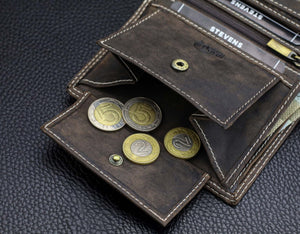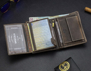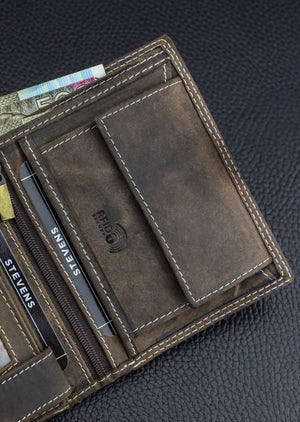 Vīriešu ādas maks STEVENS ar RFID aizsardzību, brūnā krāsā S194