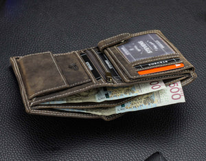 Šis elegantais vīriešu maks ir izgatavots no augstas kvalitātes īstas ādas, lai nodrošinātu izturību un stilu. Makam ir integrēta RFID aizsardzība, kas palīdz aizsargāt jūsu bezkontakta kartes no digitālo datu zādzības.
