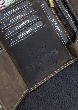 Vīriešu ādas maks STEVENS ar RFID aizsardzību, brūns