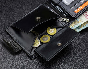 Šis elegantais vīriešu maks ir izgatavots no augstas kvalitātes īstas ādas, lai nodrošinātu izturību un stilu. Makam ir integrēta RFID aizsardzība, kas palīdz aizsargāt jūsu bezkontakta kartes no digitālo datu zādzības.