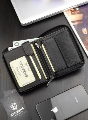 Vīriešu ādas maks ar rāvējslēdzēju un ķēdīti Stevens