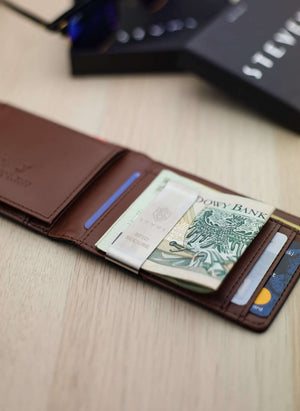 Ja esat noguris no apjomīgiem makiem, šis modelis ir domāts tieši jums. Tas ir īpaši plāns, bet ietilpīgs, ar minimāliem, bet nepieciešamiem nodalījumiem jūsu personas apliecībai, autovadītāja apliecībai un kredītkartei. Iekšpusē atradīsiet arī īpašu klipsi banknotēm un kabatu monētām ar rāvējslēdzēju.