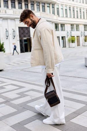 Šī rokassoma ir kompakta un ērta, padarot to ideāli piemērotu vīriešiem, kas meklē praktisku un stilīgu risinājumu ikdienas vajadzībām.
