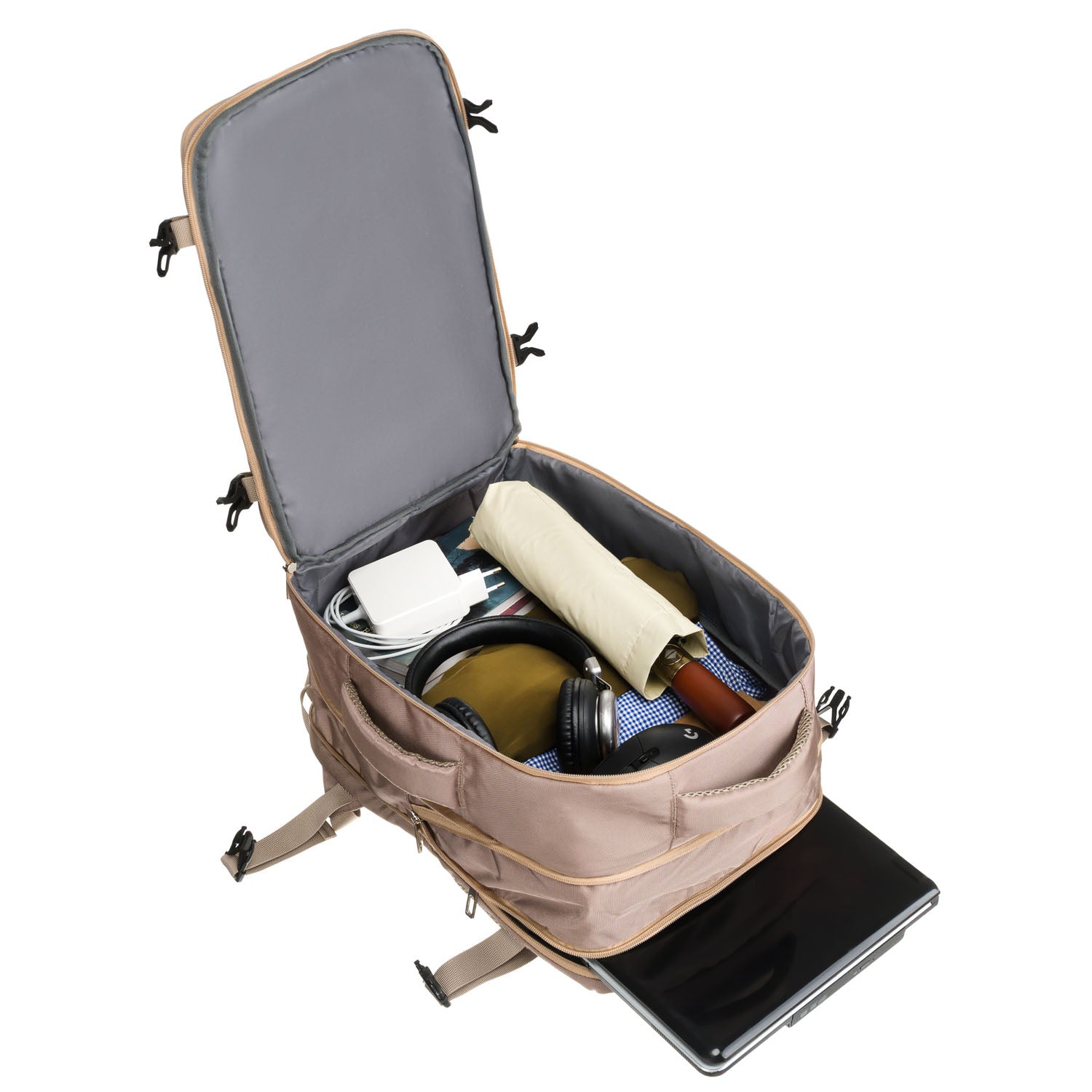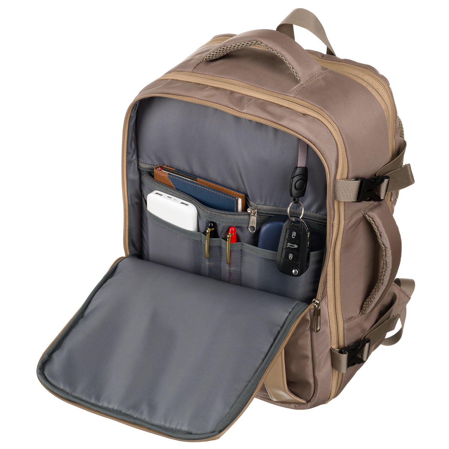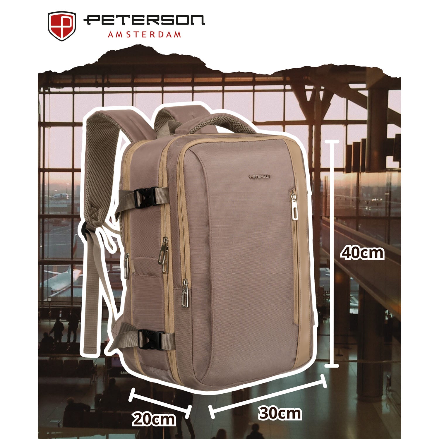 Šī bēšā Peterson mugursoma ir lieliska izvēle ikdienas lietošanai. Tā ir funkcionalitāte un stilīgs dizains, padarot to ideāli piemērotu gan darbam, gan atpūtai.