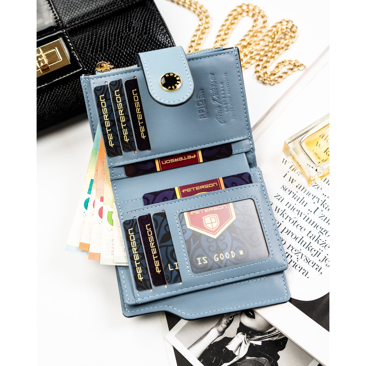 Peterson sieviešu maks no mākslīgās ādas, zilā krāsā, ar RFID aizsardzību.