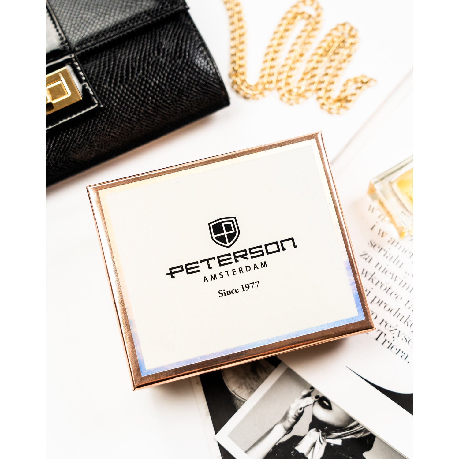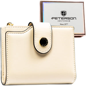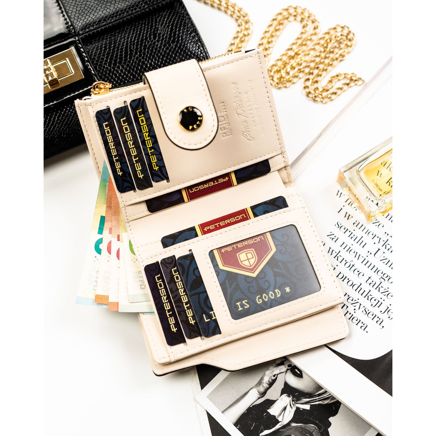 Eleganta Peterson sieviešu maks no mākslīgās ādas, bēšā krāsā, ar RFID aizsardzību.