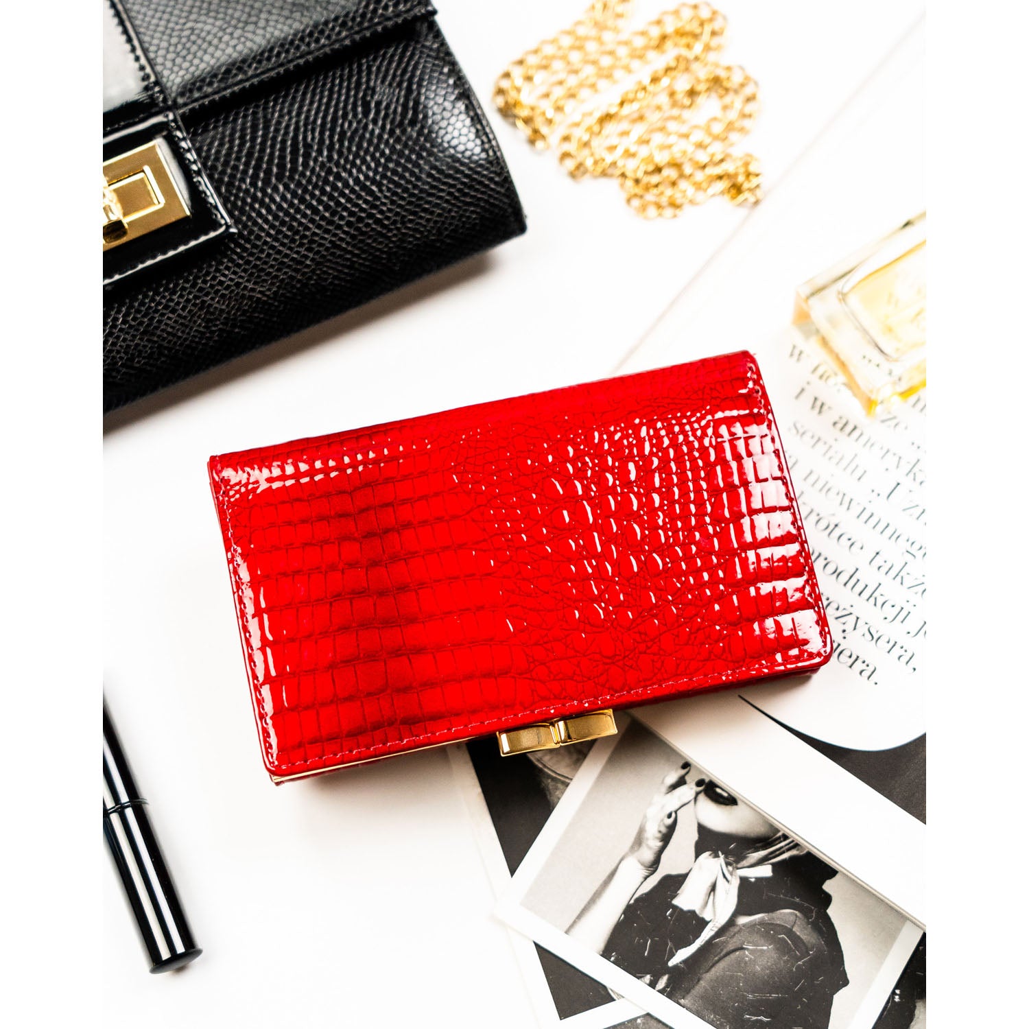 Rovicky sarkana sieviešu maks no lakotas mākslīgās ādas ar RFID aizsardzību.