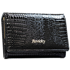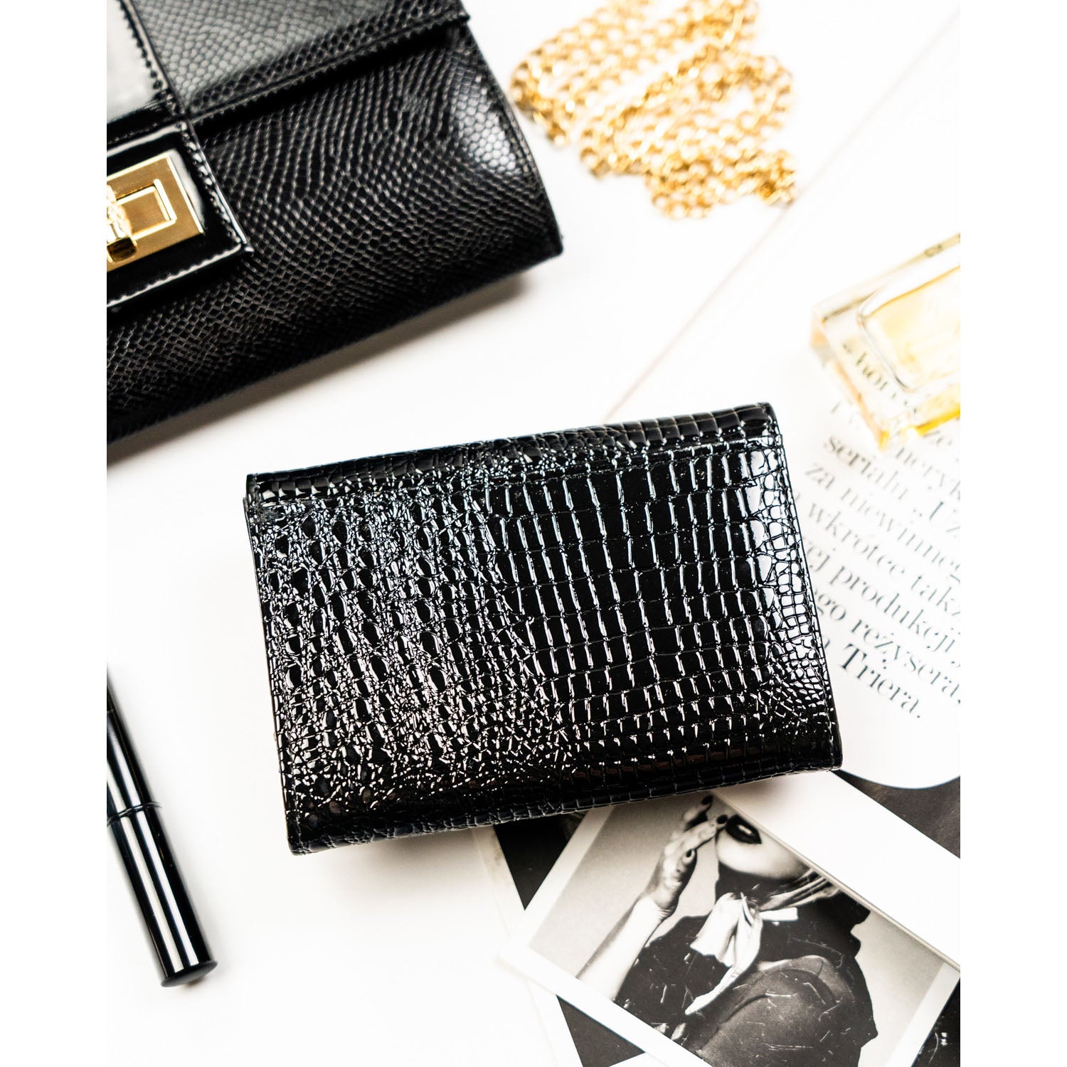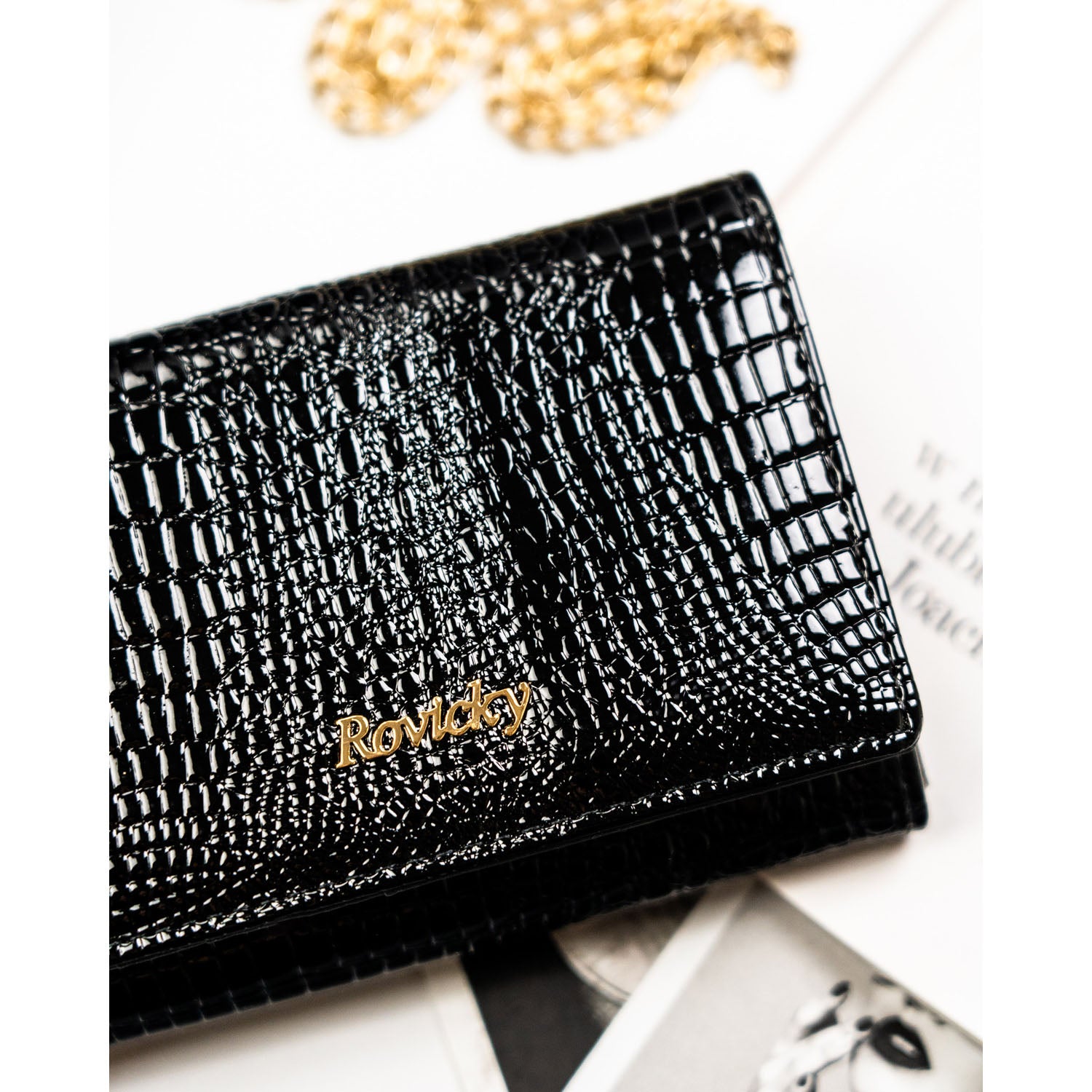 Rovicky sieviešu maks no melnas lakotas mākslīgās ādas ar aizdari.