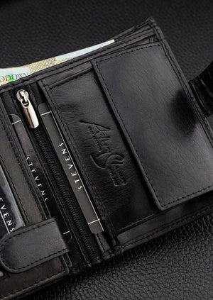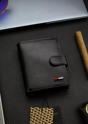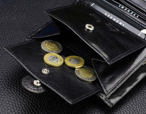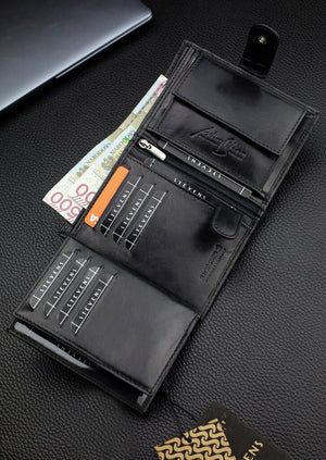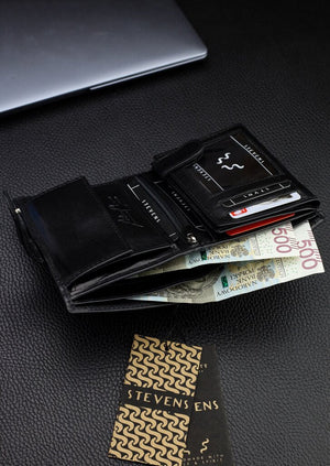 Vīriešu maks STEVENS RFID, īstas ādas, vertikāls, premium, melns, Q1