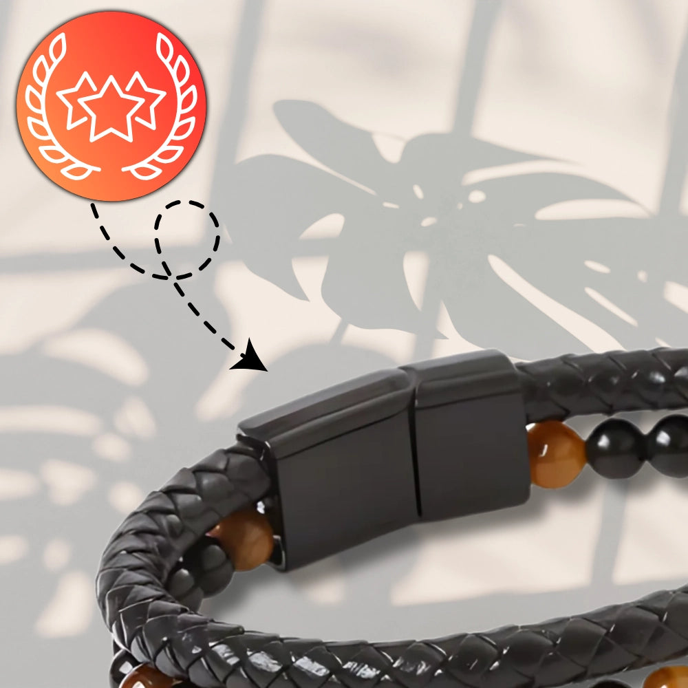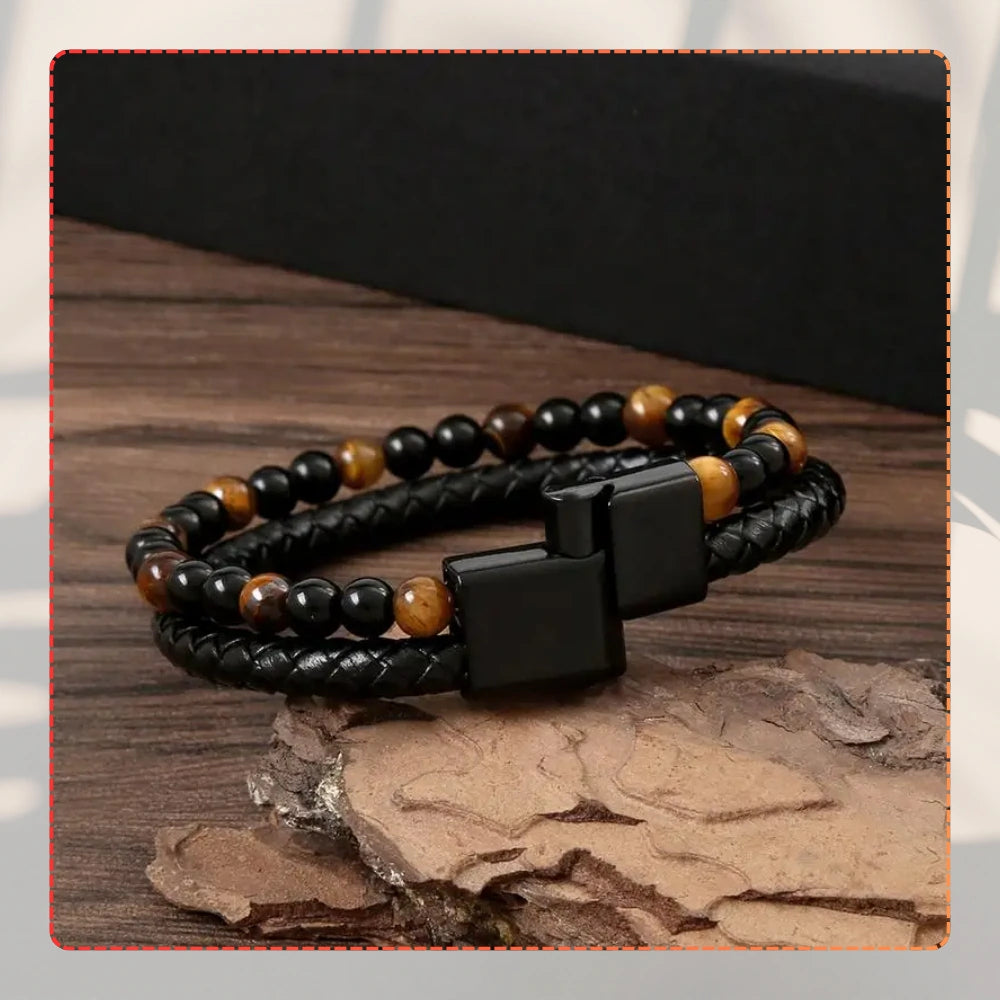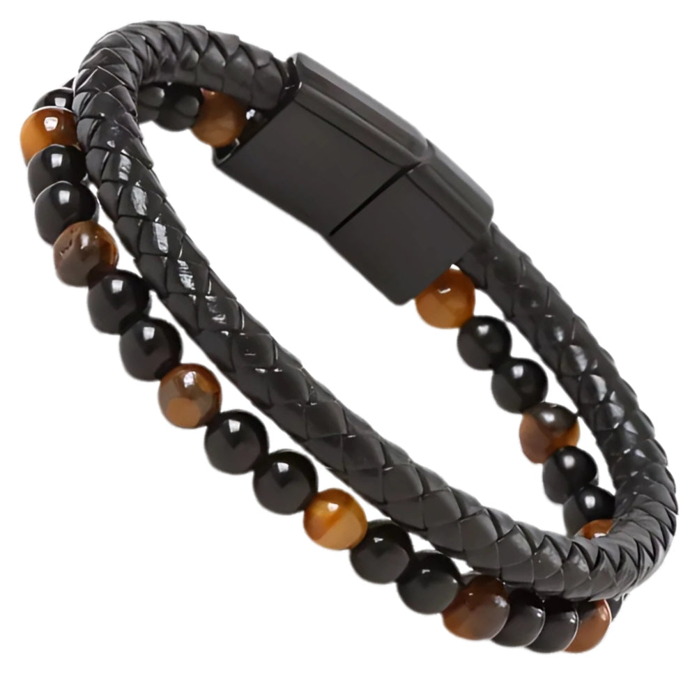 Vīriešu ādas rokassprādze ar dabīgiem akmeņiem (melna/brūna), magnēts