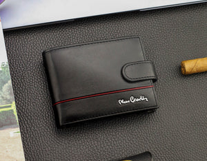 PIERRE CARDIN • Vīriešu ādas maks Q1 • Melns • Vertikāls • RFID • Aizdare ar sprādzi • Dāvanu kārba