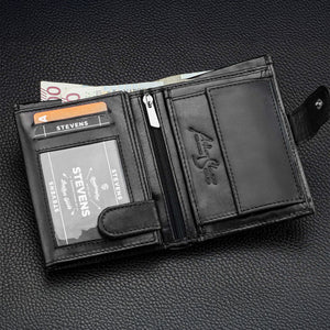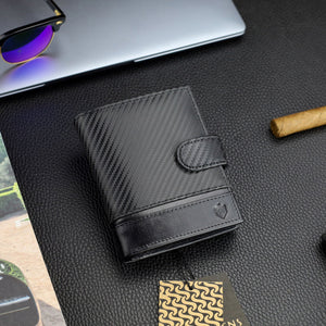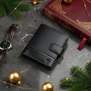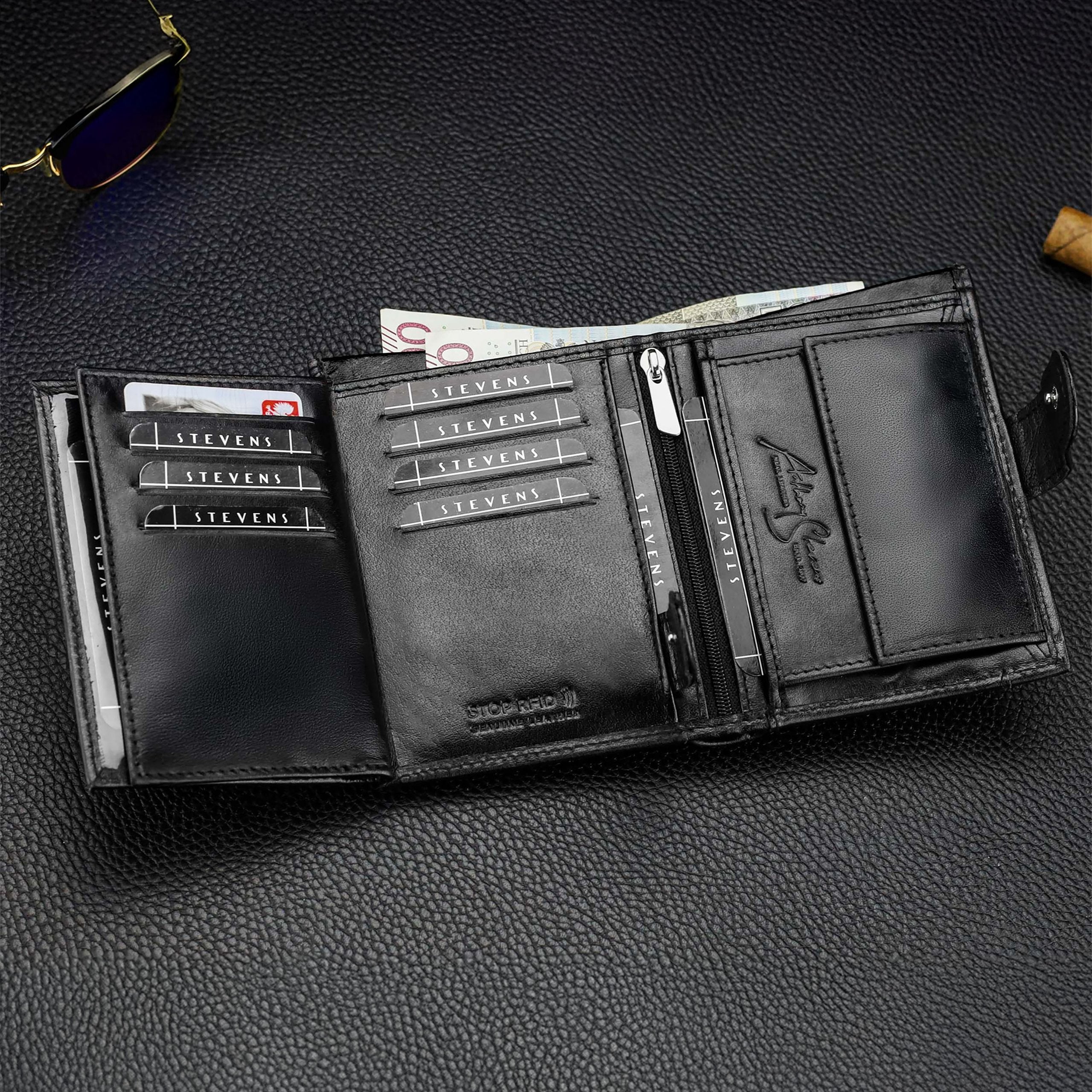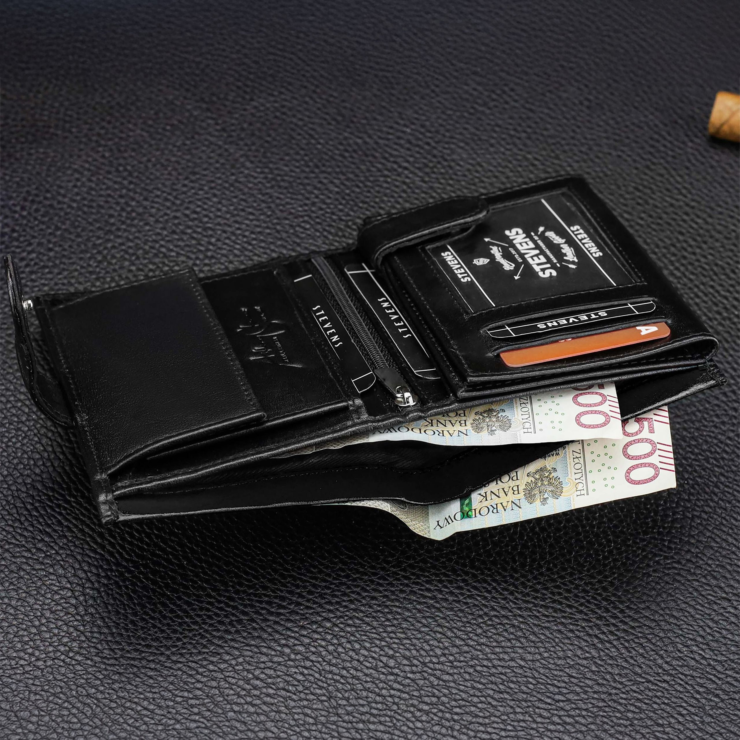 Vīriešu maks STEVENS® CARBON, dabīga āda, RFID, melns