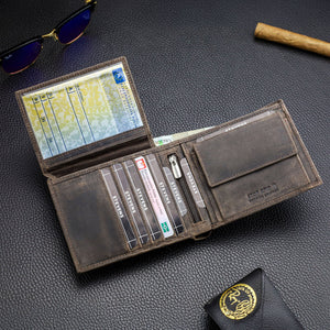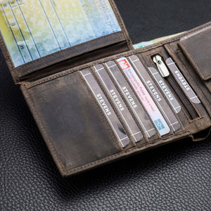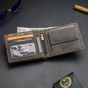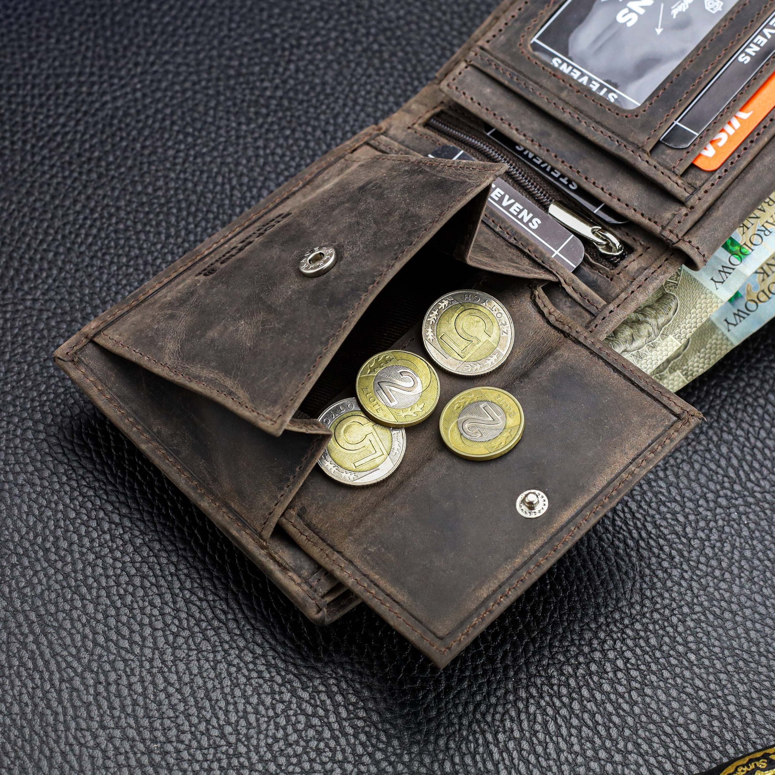 Vīriešu maks STEVENS® no dabīgās ādas, RFID, brūns, horizontāls
