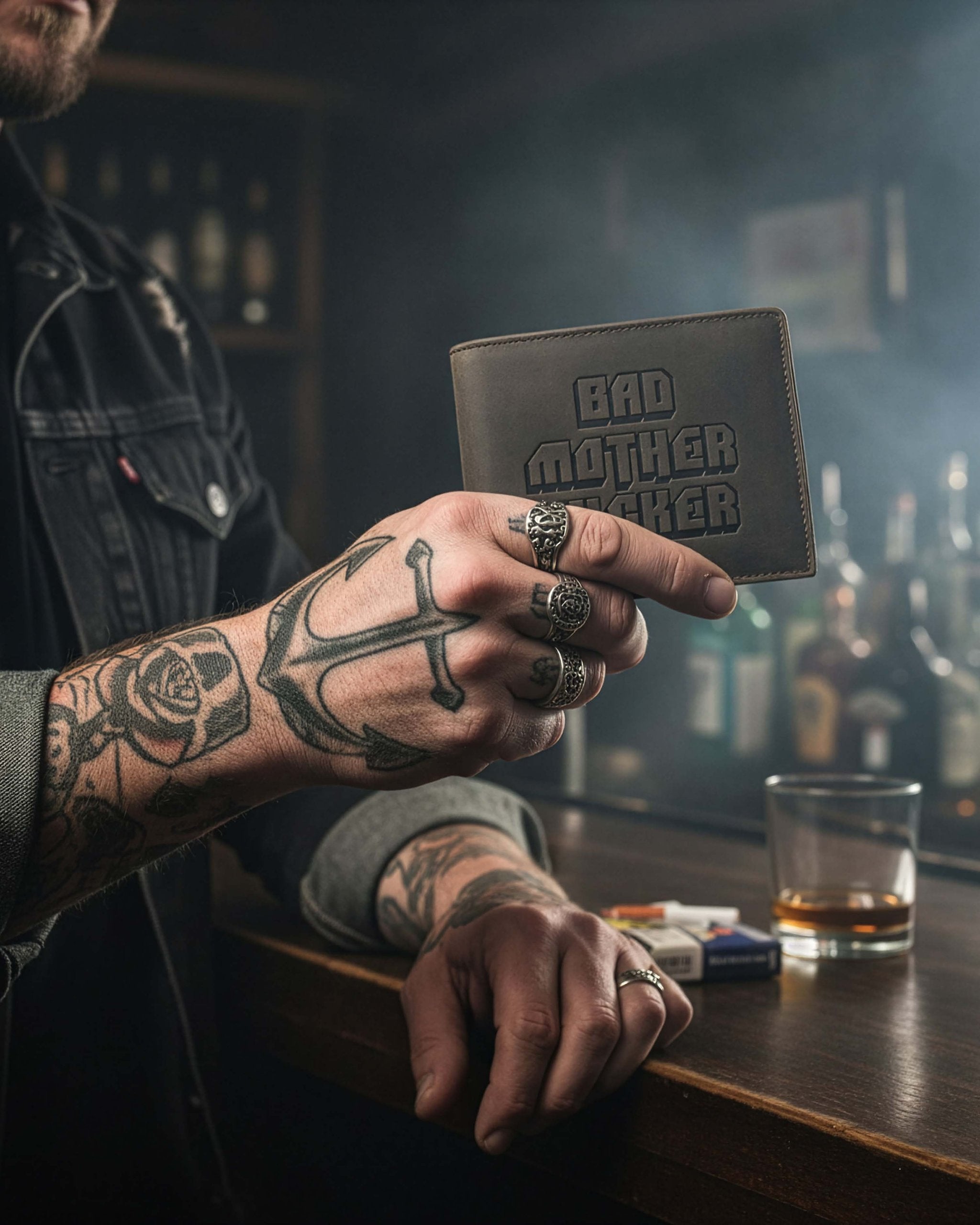 Priekšpusē – izteiksmīgs “Bad Mother” PULP FICTION motīvs. Lieliska dāvana kino cienītājam vai vīrietim, kuram patīk nedaudz neformāls, bet praktisks aksesuārs.